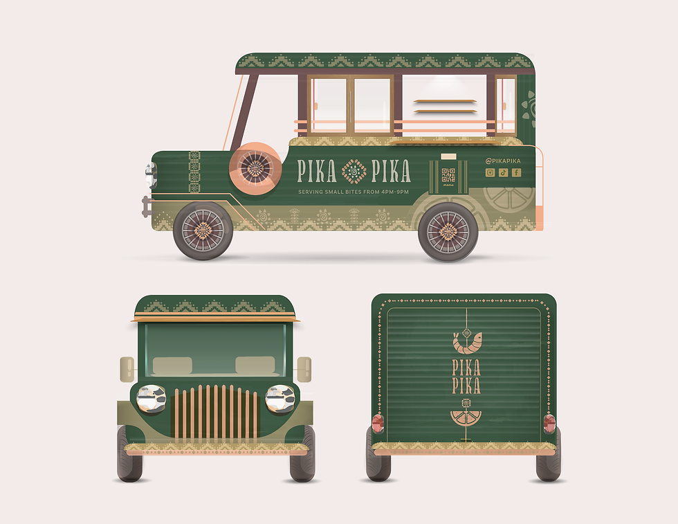 pika pika, or “little bites,” is a food truck and social dining experience serving elevated filipino pulutan—flavorful bar snacks made for sharing. the designed brand identity is vibrant, playful, and modern, with subtle nods to traditional filipino motifs.